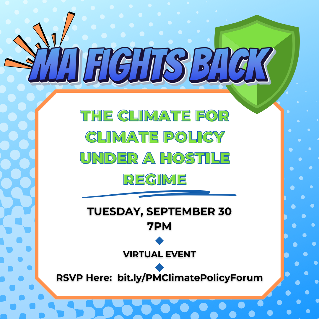 Join our friends at Progressive Mass for a forum on what we can do at the city and state level to fight against federal crackdowns on climate policy!