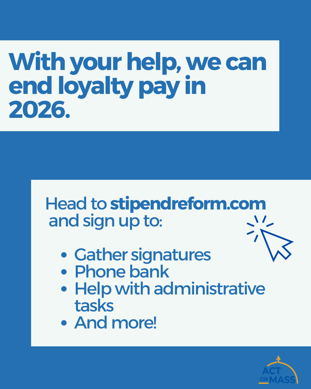 - Great op-ed by an Act on Mass ally: Why the Democratic supermajority on Beacon Hill won’t pass Democratic bills by Aaron Singer for Commonwealth Beacon