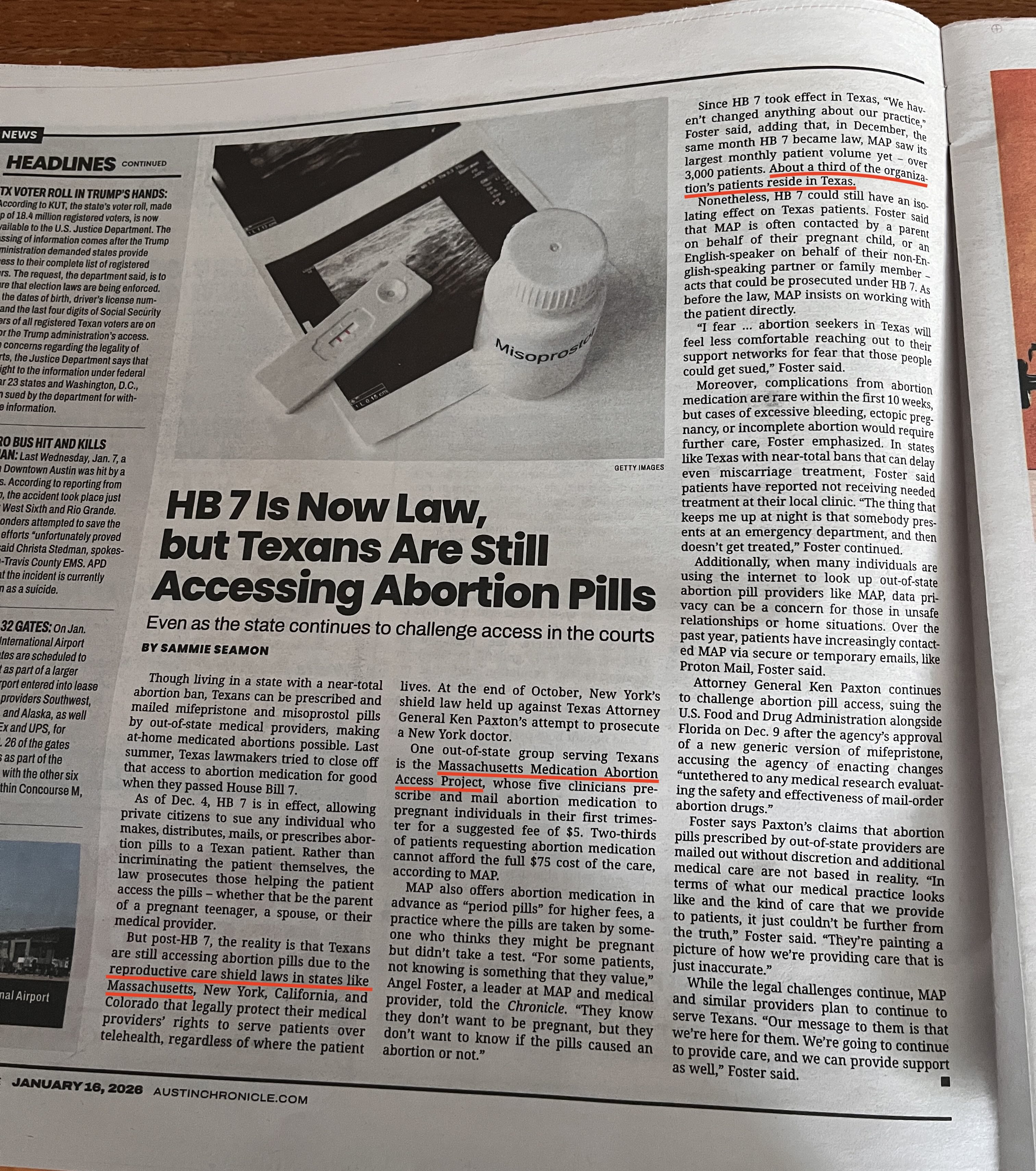 Page 2 of the January 16th Austin Chronicle. Link to the full article: HB 7 Is Now Law, but Texans Are Still Accessing Abortion Pills