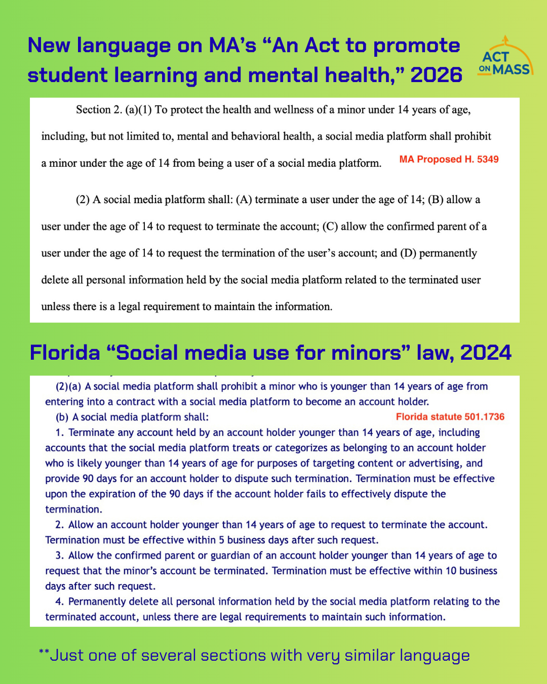 Florida’s ban was sponsored by a Republican Senator, championed by the ultra-conservative Florida House Speaker, passed by Republican supermajority, and signed by Ron DeSantis. Florida’s own legislative research bureau flagged that the age verification requirement was likely unconstitutional. Indeed, like other age verification laws, it has been held up in federal court for the last two years over free speech. Why Massachusetts’ Democratic leaders chose to mimic this law, with no notice and no public process, is genuinely a mystery to me.