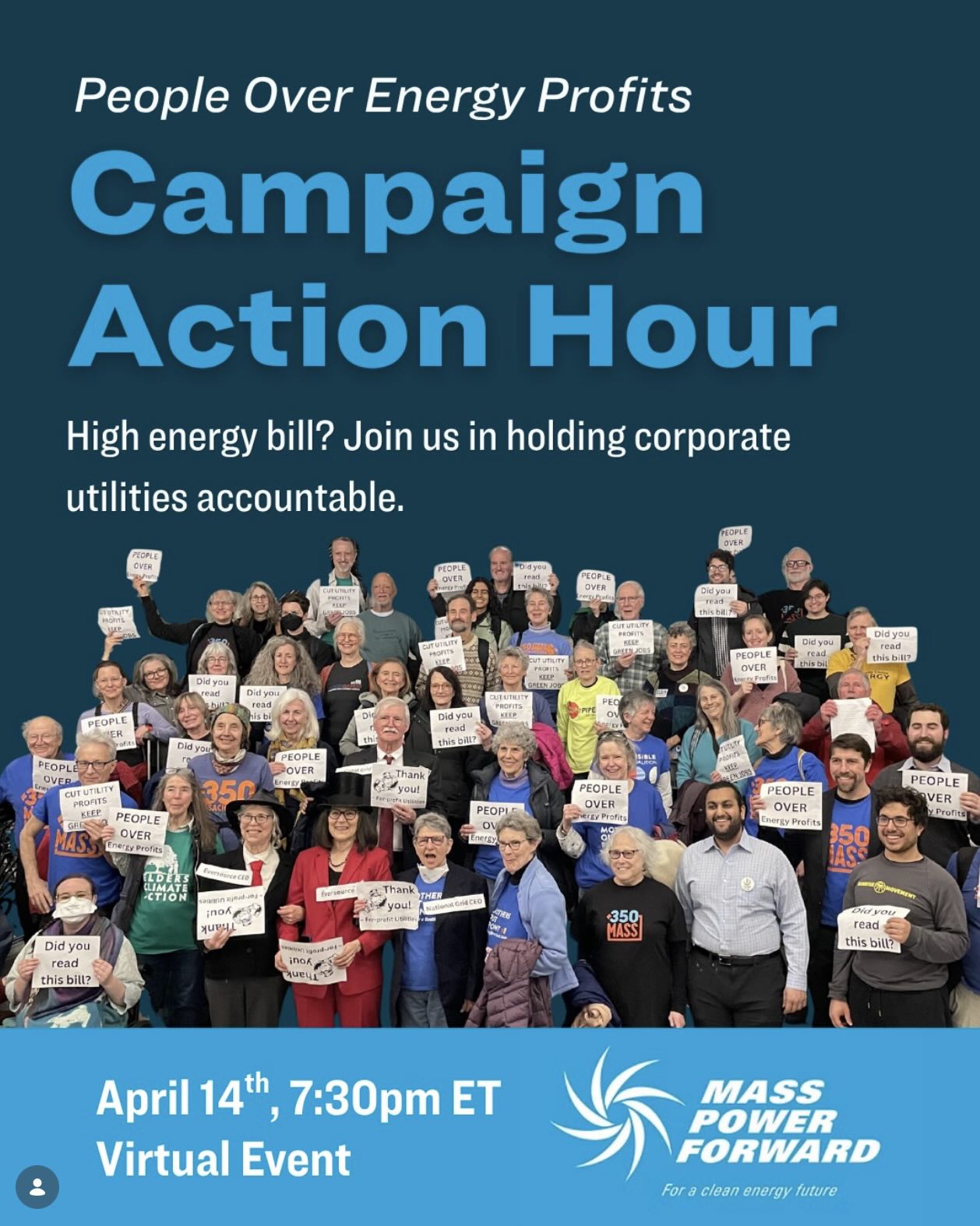 Sick of breaking the bank on high utility bills while utility companies rake in record profits? Join our friends at Mass Power Forward for an action hour this week!
