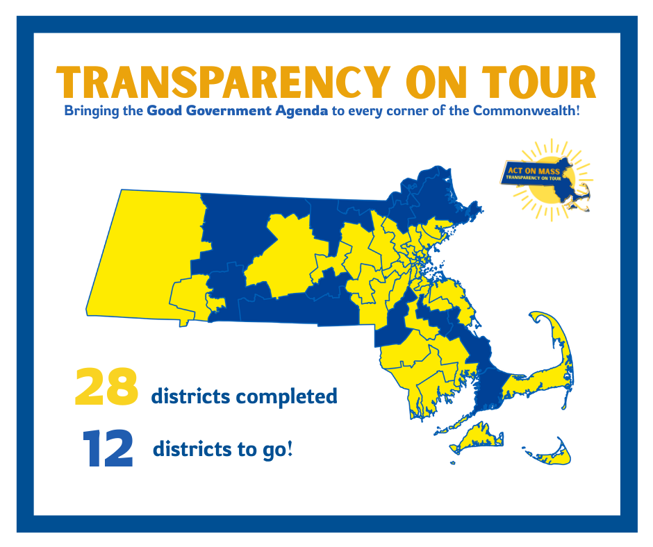This year, Act on Mass has set the ambitious goal to bring our grassroots movement for reform and our Good Government Agenda to citizens in every Senate district in the Commonwealth– all 40 of them.Â